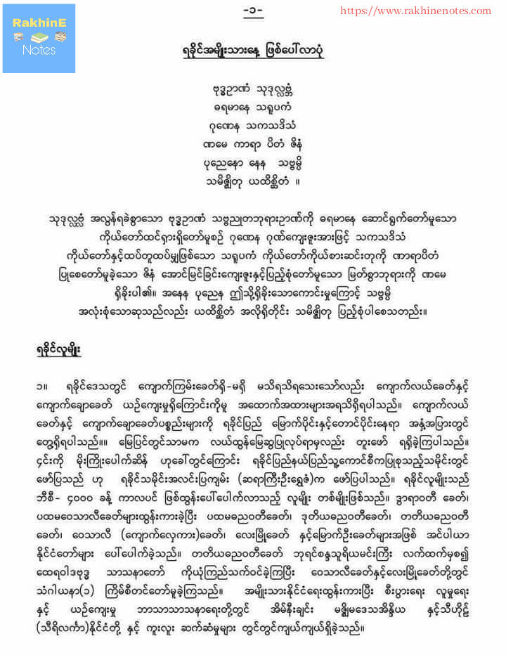 Arakan National Conference မှ ကူးယူဖော်ပြသည်။